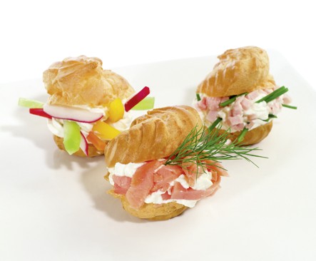 Brandteigkrapferl mit Krenobers und Räucherlachs